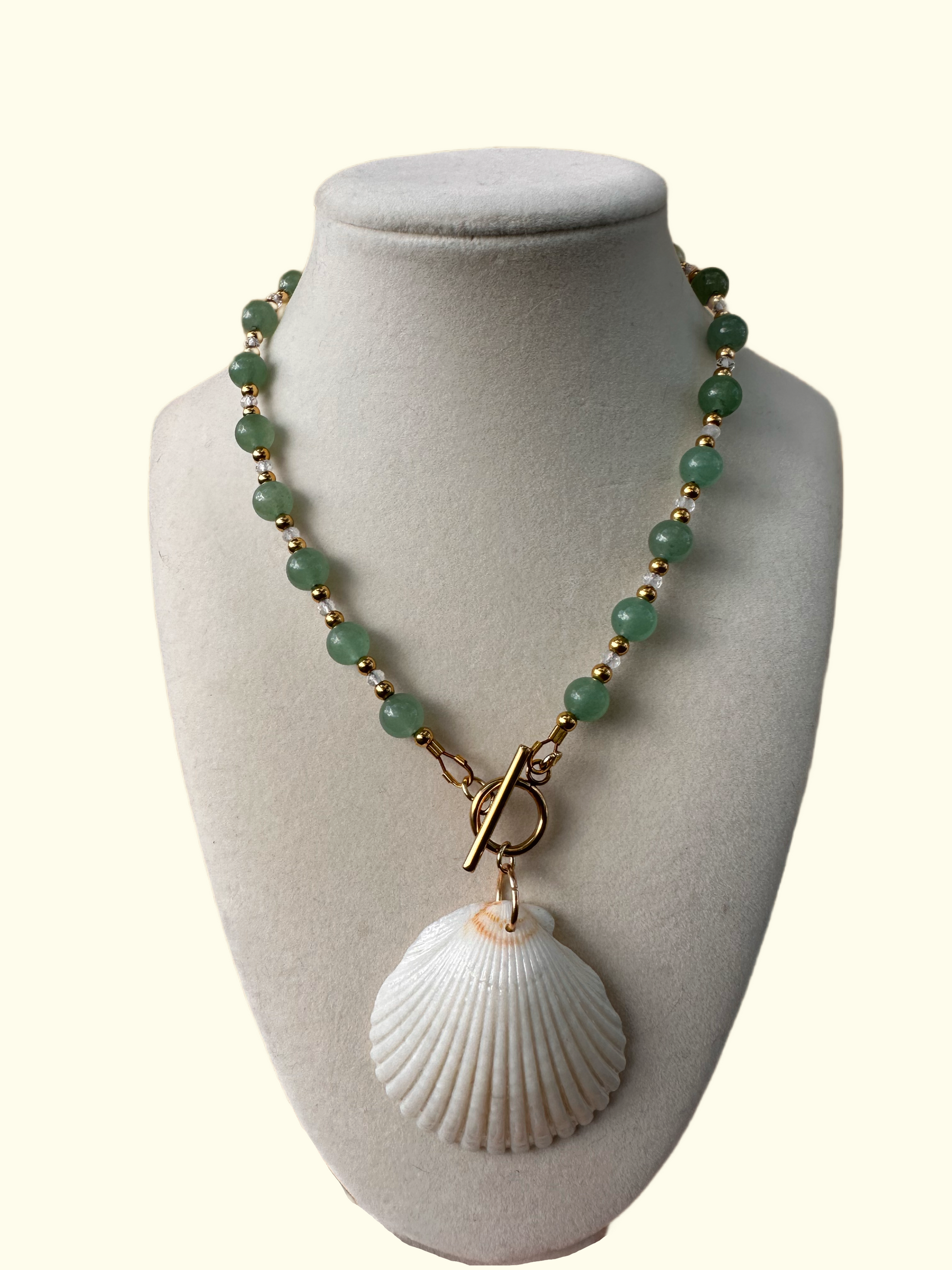 Green Aventurine - Clear Quartz - Scallop Necklace